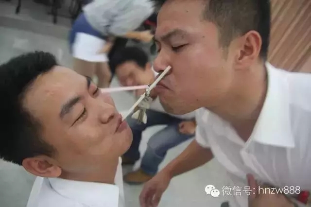 “暧昧”的男子们,用吸管来传递信物,体验紧密协作间的趣味点滴。