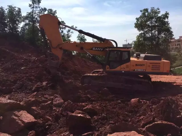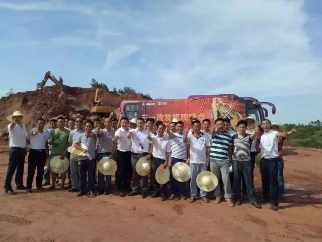 2016年6月24日三一重机江西中旺在赣州九鼎峰山别墅区举行了一场大挖前置装置改装机观摩会,来自江西各个区域的大挖客户参加了本次会议,在会议现场,大家都对SY465S配置松土器(钩子)表现出了浓厚的兴趣: